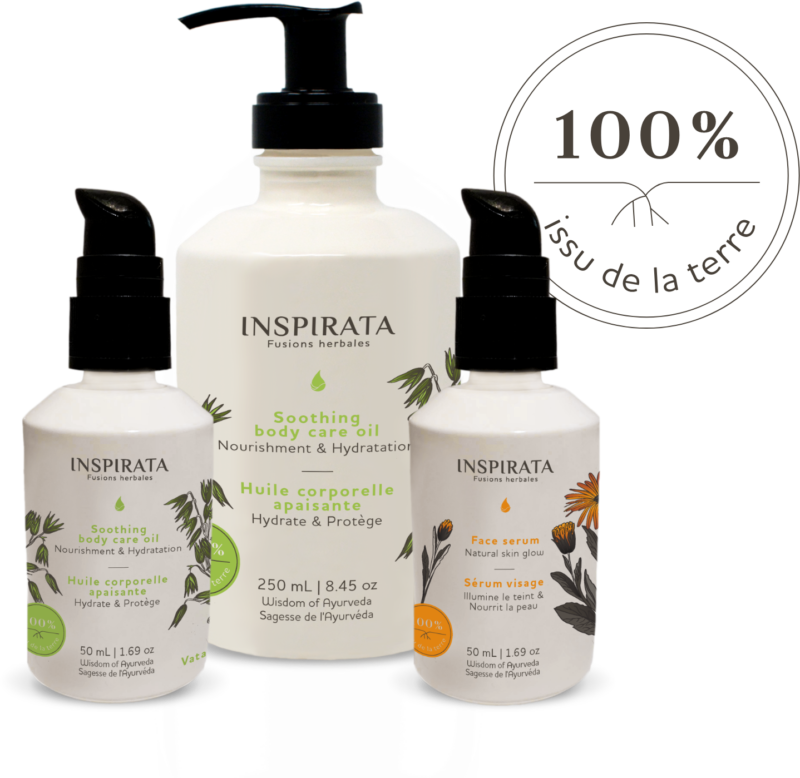 Les produits INSPIRATA sont le fruit d’un trait d’union entre l’Ayurveda et l’herboristerie occidentale, couplée à une expérience de plus de 30 ans de notre fondatrice dans le monde de la santé (contemporaine) et celui du bien être ancré dans la nature.