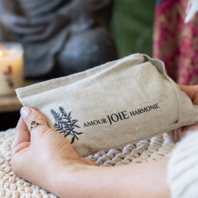En tout temps : placer doucement la pochette sur les yeux pour une détente immédiate.